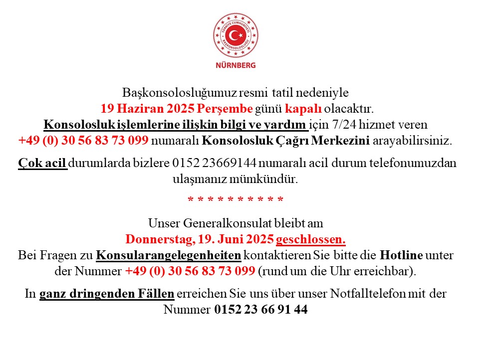 Başkonsolosluğumuz resmi tatil nedeniyle